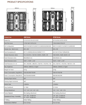 Entirely modular in design with magnetic without screws,no up- down direction with strong handles onmodules.Design with high refresh rate, high brightness upto3 5 0 0nits and high greyscale levels, wide color gamuttoaccurately performance display