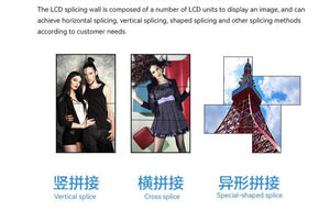 The LCD splicing wall is composed of numbers of LCD units to display an image, and can achieve horizontal splicing, vertical splicing, shaped splicing and other splicing methods.