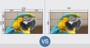 The traditional video wall uses a matrix processor and a distributor to divide a signal into multiple signals. When the screen is larger, the image is more blurred.