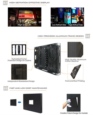 • High Brightness ≥ 5500nits • Superior Robust Aluminum Proile Cabinet • Innovated Secure Locking Designed - Overall Waterproof LED Module • Front & Rear Quick Time Maintenance