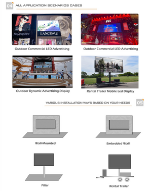 - Light weight and again waterproof, it’s ideal for movable outdoor trailer display solution. Take small space and add less weight to the trailer. Help to meet the transporation request for trailer on road.