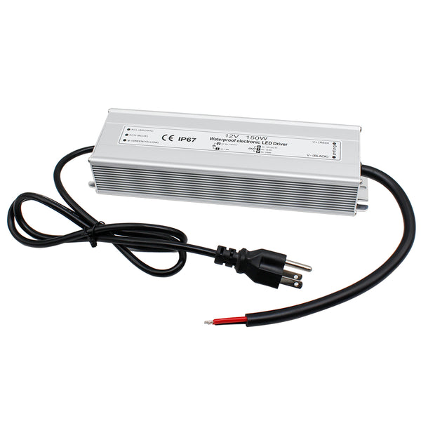 Waterproof IP67 LED Driver Transformer 150 Watt 12V Power Supply with 3-prong Plug