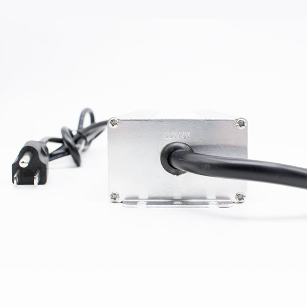 Its waterproof ability is endorsed by a complete sealed Chrome Aluminum alloy case. The transformer case is made by pure metal with built-in fuse, it's anti-collision, anti-shock, anti-thunder. 3.3ft AC cord and 3-prong plug included, you just need to plug it into a wall outlet,Easy hook up.